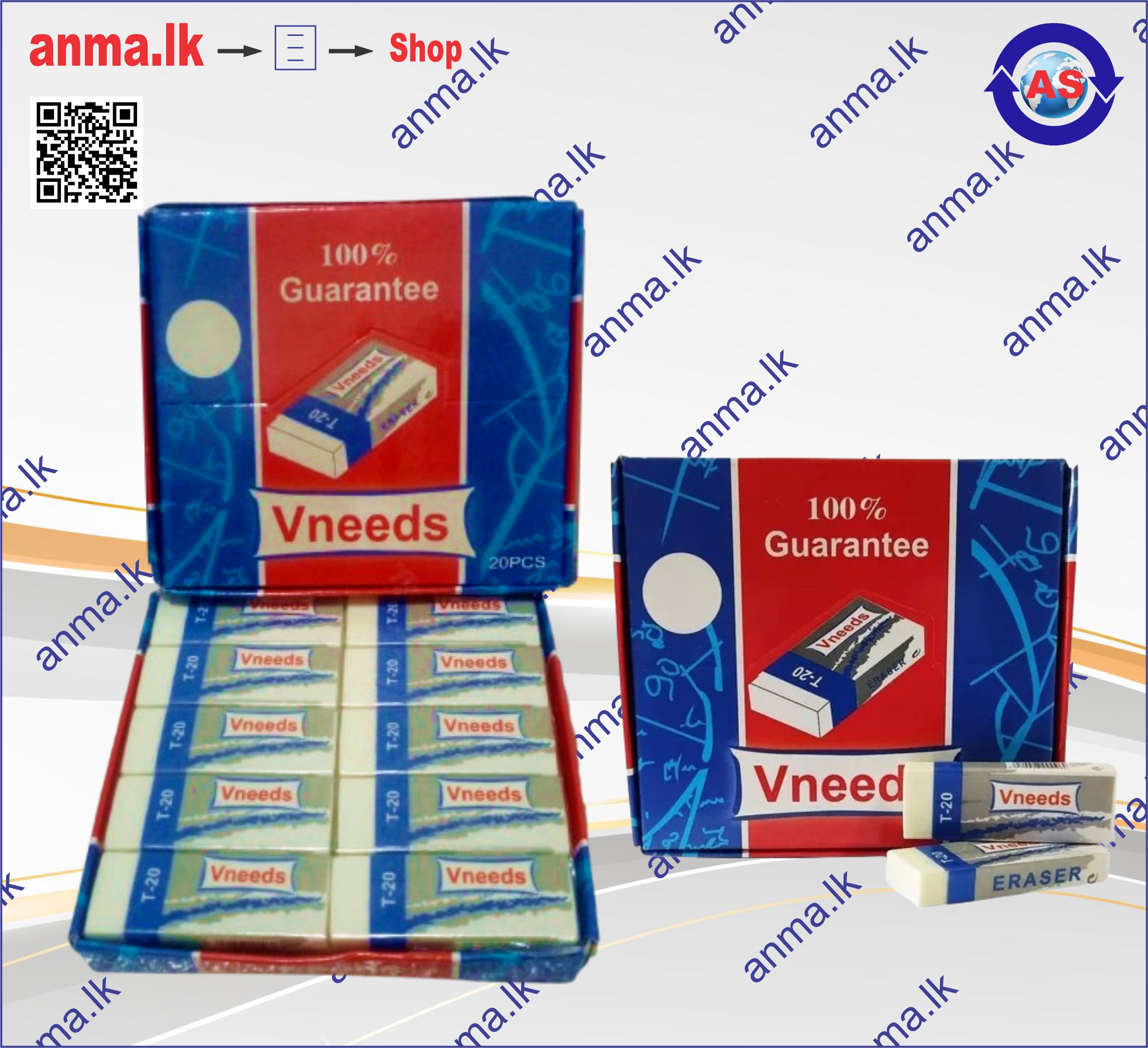 Eraser Vneeds 20Pcs (80Pcks in a ctn) [Net]