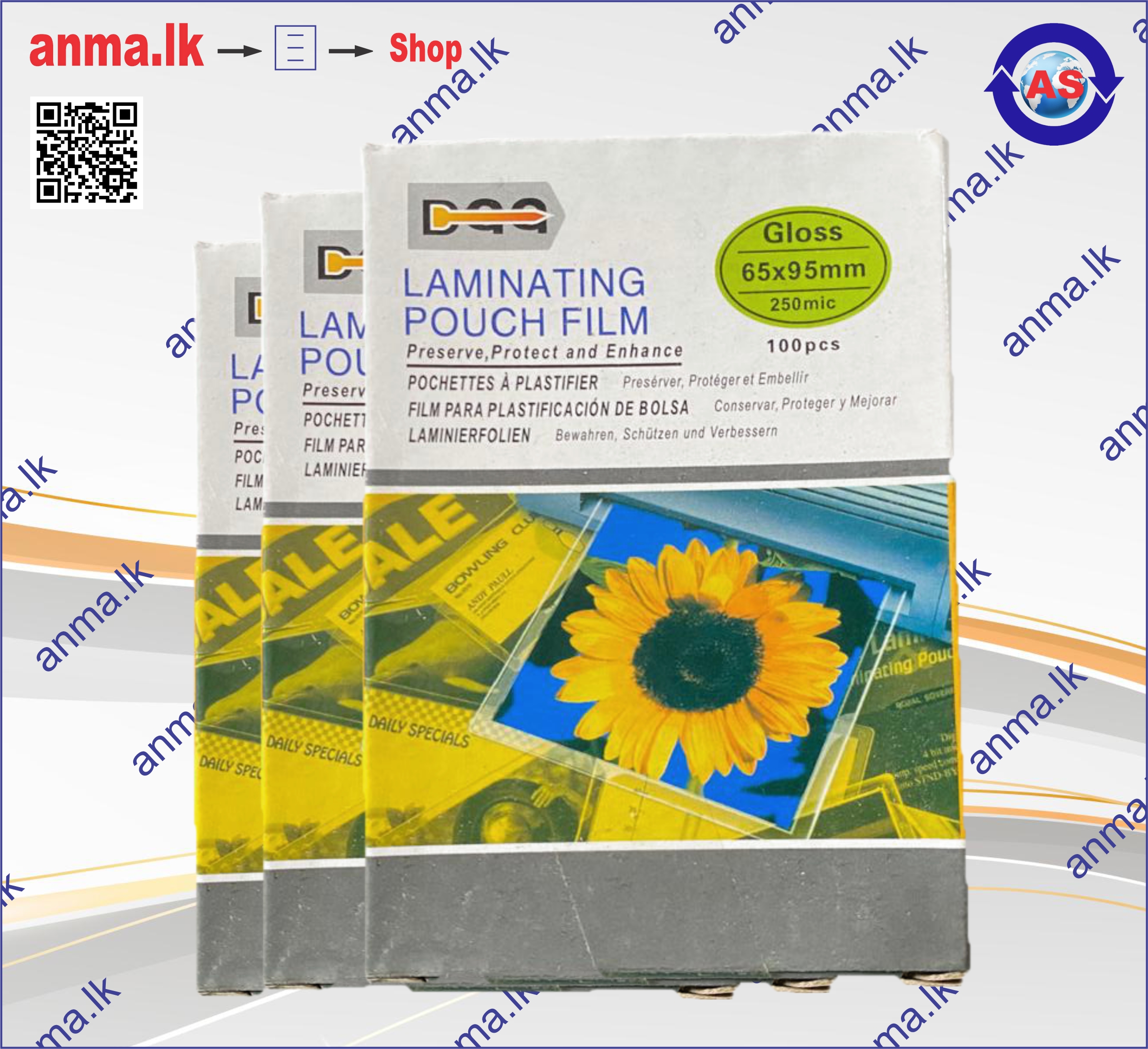 Laminating Pouch -ANMA- 65×95 250 MIC (50Pcs in a ctn) [D-20]