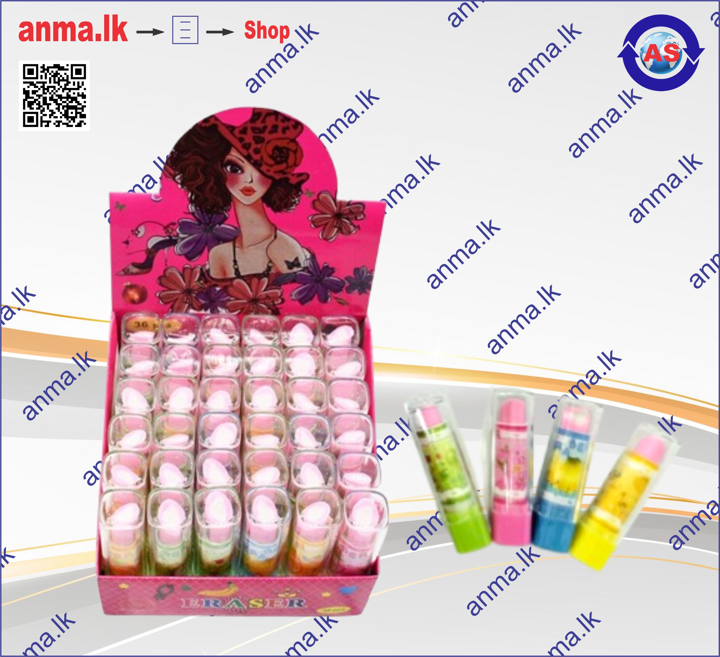Lipstick Eraser – ANMA – (36Eraser in a Small Box – 48Small Boxes in a ctn) [D-10]